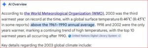 WMO in 2003, 8 years after dropping temperatures in 1995, had still not revealed the average global temperature for the 1961-1990 reference period.