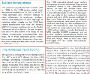 It took the WMO nine years to reveal that the average temperature for the 1961-1990 baseline period in 2004 was 14 degrees Celsius, (57 degrees Fahrenheit). Thirty years have elapsed since the WMO 1993 and 1994 reports were published and we still don’t know what average temperature they had in mind for the 1951-1980 period.